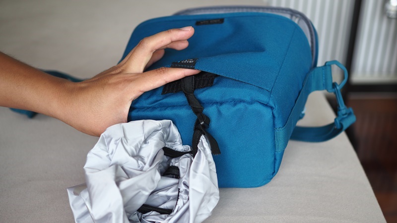 •จุดเด่นที่พลาดไม่ได้คือรุ่นนี้จัดผ้าคลุมกันฝน มาด้วย! โดยเก็บไว้ในช่องเล็กๆข้างล่าง ทำให้ออกทริปถ่ายภาพโดยไม่ต้องกังวลเรื่องฝนเลยครับ แต่อย่าลืมใส่ซองกันชื้นไว้ในกระเป๋าด้วยนะครับ