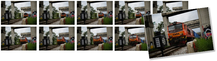 | โหมดถ่ายภาพต่อเนื่องสูงสุด 10 ภาพต่อวินาที ควรปรับระบบการโฟกัสอัตโนมัติให้เป็นแบบโฟกัสต่อเนื่อง หรือโฟกัสติดตามวัตถุเพื่อให้ตัวแบบคมชัดต่อเนื่องตลอดทุกภาพเหมือนภาพตัวอย่างที่โฟกัสติดตามหัวรถไฟตั้งแต่ระยะไกลจนกระทั่งเคลื่อนตำแหน่งเข้ามาใกล้กล้อง |