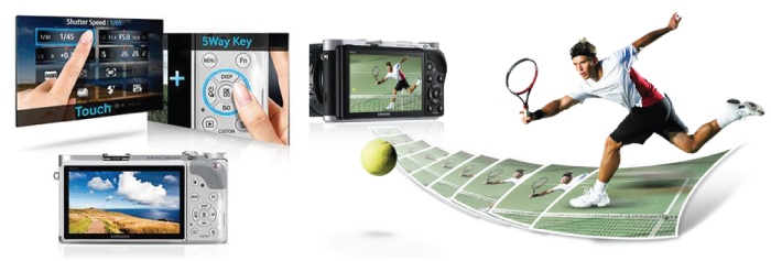 Samsung NX300 สามารถหยุดการเคลื่อนไหวของการถ่ายภาพแอ็คชั่นที่มีการเคลื่อนที่รวดเร็วด้วยความเร็วชัตเตอร์สูงสุดถึง1/6000วินาที และยังบันทึกภาพต่อเนื่องได้ถึง 8.6 ภาพต่อวินาทีให้หยุดนิ่ง เหมาะสำหรับการถ่ายภาพกีฬากลางแจ้ง อาทิ เทนนิส เจ็ทสกี ฟุตบอล วิ่ง ซึ่งความเร็วในการหยุดภาพสูงๆจะช่วยให้จับภาพในวินาทีสำคัญอย่างมีสีสัน สร้างความมันส์สะใจให้กับผู้ดูภาพให้เกิดอารมณ์ร่วมเหมือนอยู่ด้วยใกล้ๆ ณ ช่วงวินาทีนั้น นี่แหละความสามารถของเทคโนโลยีที่อัดแน่นภายในตัวกล้อง ![]() Samsung NX300 ในโหมดการถ่ายภาพต่อเนื่องมีข้อแนะนำว่าควรเลือกใช้เมมโมรี่การ์ดแบบ SD ที่มีความเร็วในการเขียน อ่านข้อมูล (Write/Read) Class10 เป็นต้นไปเพื่อการประมวลผลจะทำได้รวดเร็วไม่ต้องคอยไฟกระพริบโหลดเก็บข้อมูลนาน และจะทำให้บันทึกภาพแต่ละชุดได้มากขึ้นเร็วกว่าการใช้การ์ดความเร็วทั่วไป (Class4) อีกทั้งมีความเสถียรในเรียกข้อมูลขึ้นมาดูดีกว่าเนื่องจากไฟล์ภาพจะมีขนาดใหญ่ถึง 20.3 ล้านพิกเซล การจัดเก็บข้อมูลอย่างมีคุณภาพจึงเป็นสิ่งสำคัญที่ไม่อาจมองข้ามไปได้ ซึ่งภาพในแนวแอ็คชั่นความเร็วเป็นหัวใจที่ต้องเลือกสเปคที่สูงที่สุดเท่าที่จะหาได้ในช่วงเวลานั้นเพื่อไม่พลาดเก็บความคมชัดของทุกภาพ ไม่ว่าจะเลือกใช้ที่โหมดA, P, S หรือM ![]() Samsung NX300 ล้ำหน้าด้วยระบบ AutoShareเทคโนโลยีใหม่ในการแบ่งปันภาพด้วยเทคโนโลยี NFC(NearField Communication) สามารถส่งผ่านภาพถ่ายได้ทันทีแบบไร้สาย เมื่อแตะ Smart Camera เข้ากับ Smart Phone เมื่อเรียก App.ขึ้นมาจะสามารถเห็นมุมมองจากเลนส์ของกล้องแล้วสั่งกดชัตเตอร์ได้ทันที โดยสามารถบันทึกข้อมูลไว้ในสมาร์ทโฟนเพื่อส่งแชร์เข้าสู่โลกออนไลน์ได้รวดเร็วและเชื่อเหลือเกินว่าเพื่อนๆของคุณจะทึ่งกับความคมชัด ตลอดจนสีสันที่กล้องด้านหลังในสมาร์ทโฟนเทียบไม่ติดฝุ่น นอกจากนี้ในตัวกล้องยังสามารถตกแต่งภาพด้วย Digital Filter หลากหลาย อาทิ Fisheye, Oil Painting สำหรับท่านที่ชื่นชอบการถ่ายภาพบุคคลซัมซุงมีโหมดช่วยให้หน้าขาว เนียน สดใสราวกับเนรมิตเพราะใช้เวลาเพียงชั่วครู่โปรแกรมในตัวกล้องจะทำงานอย่างมีประสิทธิภาพ นอกจากนั้นยังมีโหมด Best Face ที่ช่วยให้การถ่ายภาพหมู่เป็นเรื่องง่ายไม่ต้องกังวลกับการมีภาพคนใดคนหนึ่งหลับตา หรือยิ้มไม่สวยเพราะกล้องจะทำการคัดเลือกภาพแอ็คชั่นที่ดีที่สุดของแต่ละคนมารวมไว้เป็นภาพเดียว ลูกเล่นการใช้งานยังมีอีกมากมายให้สร้างสรรค์ โดยการเลือกนั้นลื่นไหลด้วยระบบสัมผัสทั้งหมดจึงไม่ต้องกังวลกับการเลือกโหมดผิดพลาด หรือหาปุ่มควบคุมไม่เจออีกต่อไป สุดท้ายไม่ต้องกังวลกับการถ่ายภาพไม่