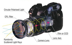 | ฟิลเตอร์ยอดนิยมอีกชิ้นที่นักถ่ายภาพสถาปัตยกรรม วิวทิวทัศน์ มักมีติดกระเป๋า เพื่อช่วยตัดแสงสะท้อนจากใบไม้ พื้นน้ำ กระจก หรือท้องฟ้า ให้สดใส และชัดเจน คล้ายกับเวลาใส่แว่นกันแดด โดยใช้มือหมุนกรอบด้านบนให้ตัดแสงโพลาไรซ์จนกว่าจะพอใจ ผลของภาพที่ได้จะเข้มขึ้น แต่ก็มีอัตราการเสียแสงตั้งแต่ 1-2 สต็อป |