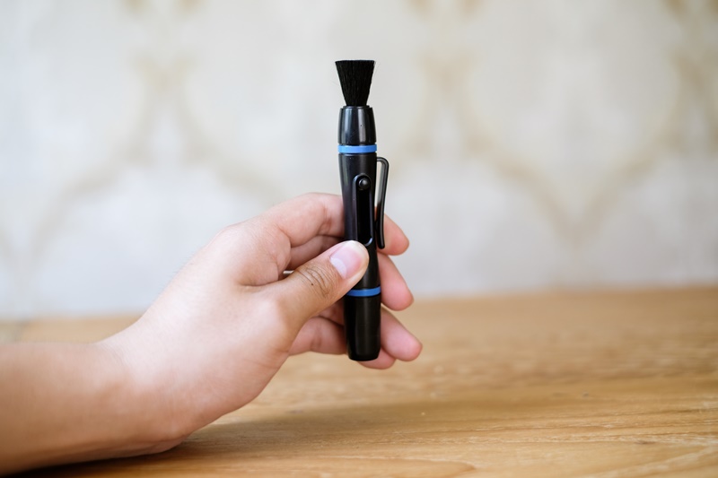 ใช้ปากกาเช็ดเลนส์ หรือ LensPen ในที่นี้เราใช้ของ FilterKlearกันครับ โดยให้ใช้ด้านที่เป็นแปรงนุ่มปัดสิ่งสกปรกจำพวกเศษหินเล็กๆ ออกก่อน เพื่อไม่ให้ขูดหน้าเลนส์ครับ และทำให้การเช็ดเลนส์ง่ายขึ้นไปอีก