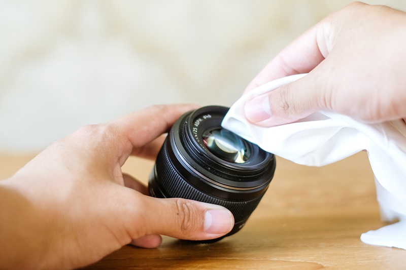 เมื่อหมดแล้ว นำผ้าไมโครไฟเบอร์ค่อยๆ เช็ดหน้าเลนส์สักรอบนึงครับ