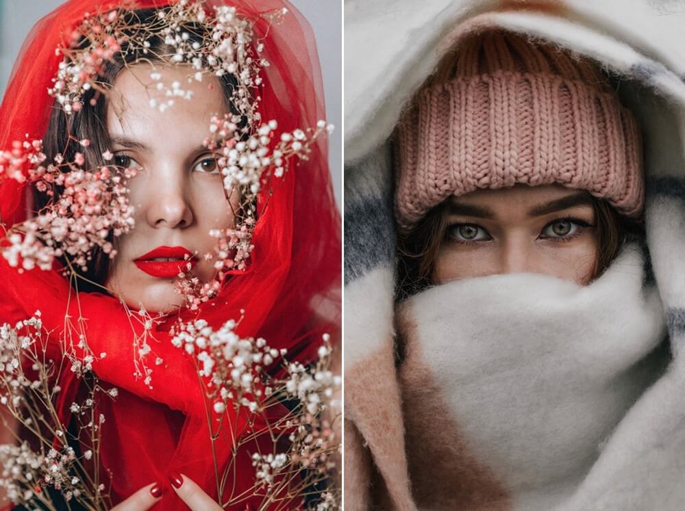 อีก 1 วิธีในการเพิ่มความลึกลับให้กับภาพ Portrait ปิดให้น่าค้นหายิ่งขึ้น เช่น คุณสามารถใช้หมวก เสื้อผ้า ผม หรือผ้าพันคอปิดหน้า เหมือนการโฟกัสแค่สิ่งที่อยากจะสือ เพื่อให้ภาพดูน่าค้นหา โดยเราจะต้องใช้เลนส์ที่สามารถโฟกัสใกล้ได้หรือถ่ายมาโครได้มาช่วย