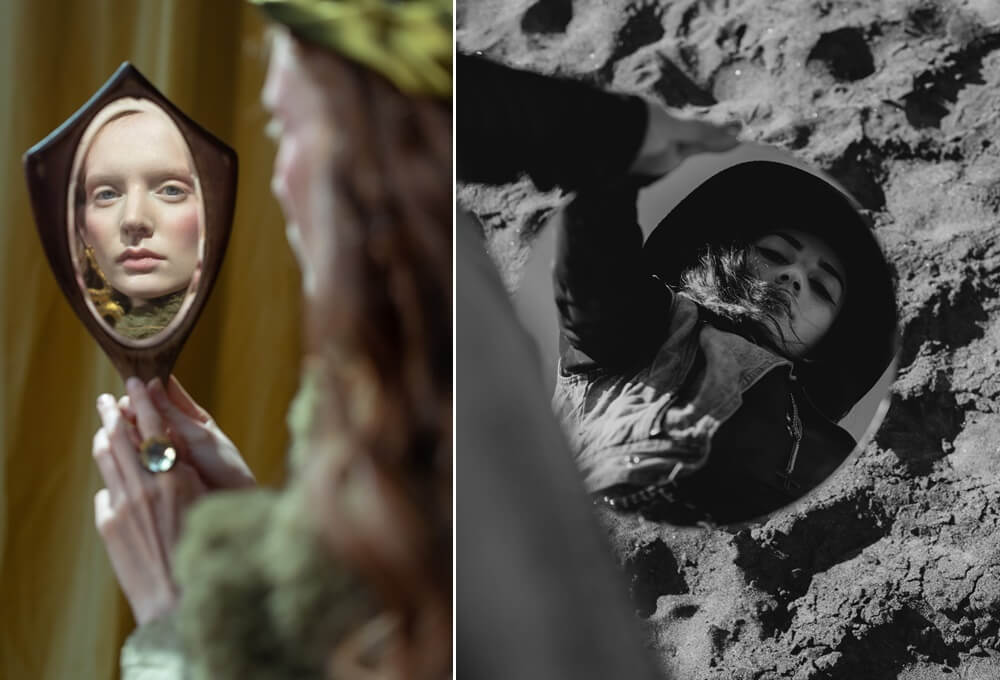 ตอนนี้หลายๆ คนฮิตพกกระจกไปถ่ายตามสถานที่ต่างๆ กันมาก ถือได้ว่าเป็นพร็อพที่ดีเลย เพราะช่วยเพิ่มความมินิมอลให้กับภาพได้ดี ไม่ว่าจะไปคาเฟ่ ทุ่งหญ้า หรือทะเล ก็เข้ากับสถานที่ได้ดี
