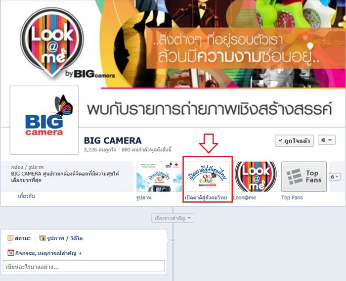 | เมื่อเข้า facebook/BIGCAMERACLUB กดตรง App เปิดตาดีสู่สังคมไทย ดังตามรูป