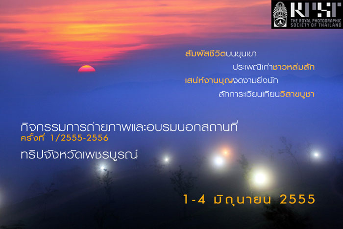 สมาคมถ่ายภาพแห่งประเทศไทย ในพระบรมราชูปถัมภ์ ได้จัดกิจกรรมการถ่ายภาพและอบรมนอกสถานที่ ครั้งที่ 1/2555-2556 จังหวัดเพชรบูรณ์ ในวันศุกร์ที่ 1 ถึง จันทร์ที่ 4 มิถุนายน 2555