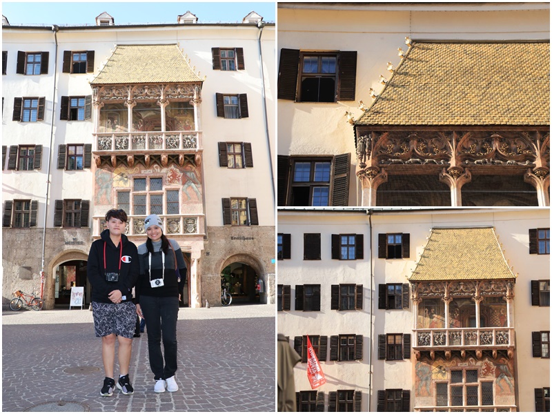 Destination 3 Golden Roof เป็นชื่ออาคารที่ก่อสร้างในช่วงเปลี่ยนเข้าสู่ศตวรรษที่ 16 เพื่อเป็นการเป็นการเฉลิมฉลองการอภิเษกสมรสครั้งที่สองของจักรพรรดิแม็กซิมิเลียนที่ 1 มีการใช้กระเบื้องทองแดงปิดทองจำนวน 2,657 แผ่นในการมุงหลังคากว้าง 16 เมตรเพื่อพยายามกำจัดข่าวลือเกี่ยวกับสถานการณ์ทางการเงินที่ย่ำแย่ เมื่อไล่สายตาต่ำลงมาใต้ขอบหลังคา คุณจะพบรูปนูนที่แสดงเหตุการณ์ต่างๆ ในช่วงชีวิตขององค์จักรพรรดิแม็กซิมิเลียน รูปที่โดดเด่นที่สุดคือภาพที่พระองค์ทรงยืนอยู่ระหว่างมเหสีทั้งสอง ซึ่งเป็นความพยายามที่จะไม่ทำลายความสัมพันธ์เก่าๆ ที่เกิดจากการสมรสครั้งแรกของพระองค์ พิพิธภัณฑ์ที่ได้รับการตกแต่งอย่างดีซึ่งแบ่งออกเป็น 6 ส่วนบอกเล่าเรื่องราวเกี่ยวกับประวัติของอาคารนี้โดยละเอียด พิพิธภัณฑ์นี้มีการจัดแสดงแบบอินเทอร์แอคทีฟเกี่ยวกับชีวิตความเป็นอยู่ของผู้คน ณ ช่วงเวลาของการก่อสร้าง Golden Roof คุณสามารถฟังคำบรรยายอย่างละเอียดเกี่ยวกับสิ่งที่จัดแสดงผ่านเทปนำเที่ยวซึ่งรวมอยู่ในค่าผ่านประตู เมื่อเดินมาถึงมุขหน้าต่างเหลี่ยม ให้แวะพักสักครู่เพื่อชื่นชมทิวทัศน์นอกหน้าต่างซึ่งถือเป็นไฮไลท์