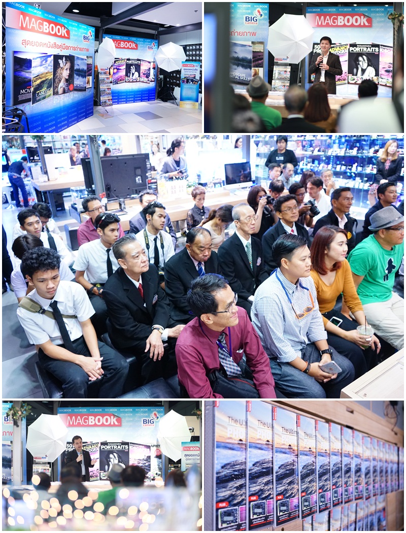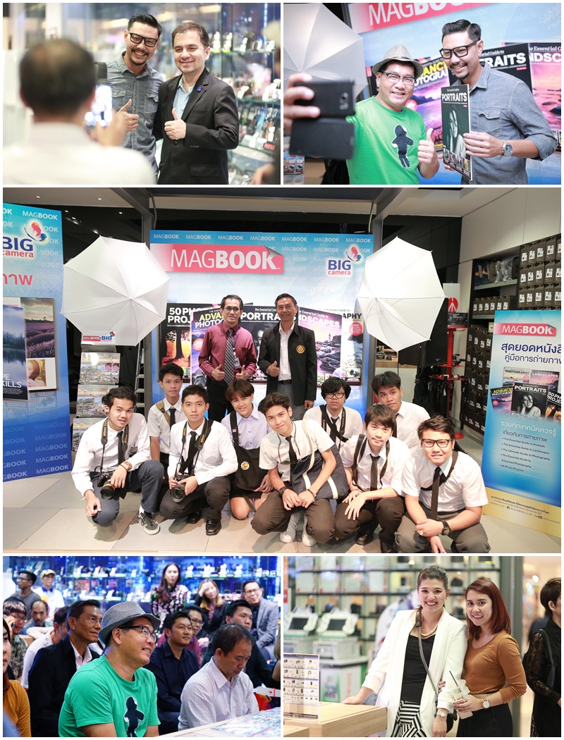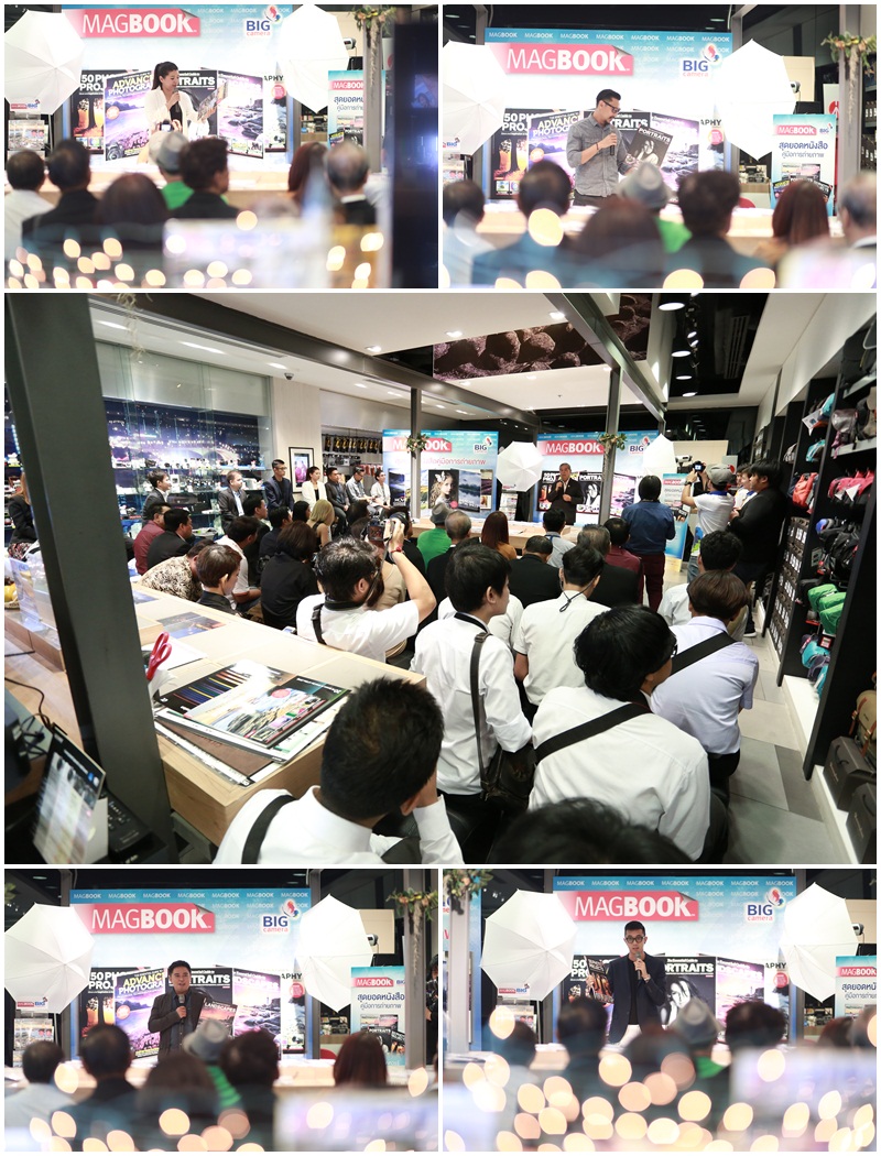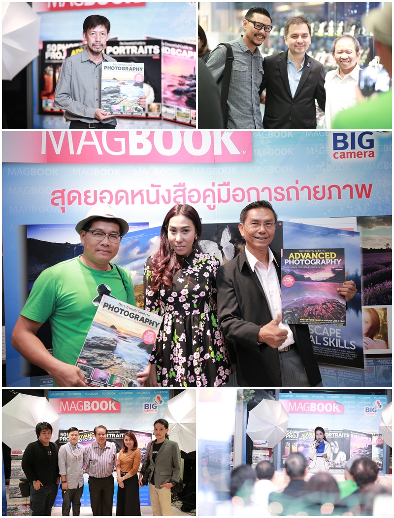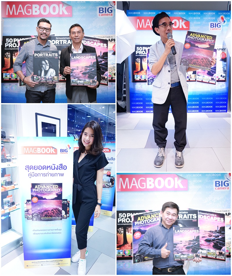 | พร้อมการันตีเนื้อหาการเป็นผู้นำเทรนด์การถ่ายภาพของหนังสือ MAGBOOK สุดยอดหนังสือคู่มือการถ่ายภาพทั้ง 5 เล่ม โดยมีเหล่า Celebrity ช่างภาพแนวหน้าของประเทศไทยมาร่วม Confirm หนังสือ MAGBOOK โดยได้รับเกียรติจาก คุณ สยมภูว์ เศตะพราหมณ์ ช่างภาพมืออาชีพ มาพร้อมกับ หนังสือ The Essential Guide to Advanced Photography, คุณ ศุภสิธ ศรีสวัสดิ์ศักดิ์ ช่างภาพระดับแถวหน้าของวงการแฟชั่น มาพร้อมกับ หนังสือ The Essential Guide to Portraits, คุณ ปิยะฉัตร แกหลง ช่างภาพอาชีพ และคอลัมนิสต์นิตยสารชั้นนำ มาพร้อมกับ หนังสือThe Essential Guide to Landscapes, คุณ อลิซ วิชช์โชติ ช่างภาพอิสระ และ กรรมการบริหารสมาคมถ่ายภาพแห่งประเทศไทย ในพระบรมราชูปถัมภ์ มาพร้อมกับหนังสือ The Ultimate Guide to Photography และสุดท้าย คุณ พศิน อัธยาตมวิทยา ผู้เชี่ยวชาญด้านการจัดแสง มาพร้อมกับ หนังสือ 50 Photo Projects โดยมี คุณ นิวรรณ เตือนใจยา ผู้จัดการแผนกการตลาด และการสื่อสารองค์กร บริษัท บิ๊ก คาเมร่า คอปอเรชั่น จำกัด ( มหาชน) ให้การต้อนรับเหล่า Celebrity ในวงการถ่ายภาพอย่างใกล้ชิด |