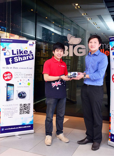 โดยผู้โชคดีได้แก่ คุณวัชราวุธ ปรีมงคล เป็นผู้โชคดีจากการร่วมกิจกรรม LIKE & SHARE แฟนเพจ BIG Camera รับรางวัล Samsung Galaxy Camera มูลค่า 16,900 บาท SMART Camera สุดอัจฉริยะ ที่สามารถถ่ายภาพ อัพโหลดขึ้น Social Network ได้ทันที