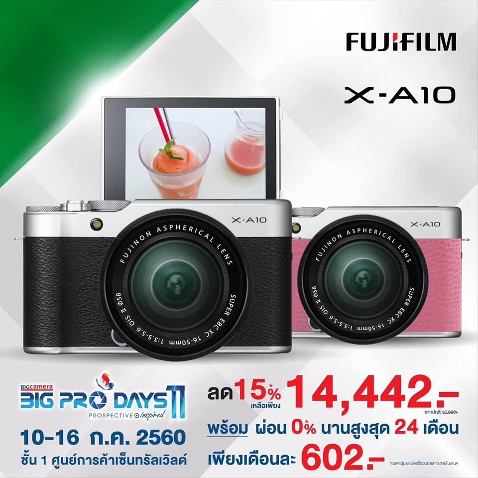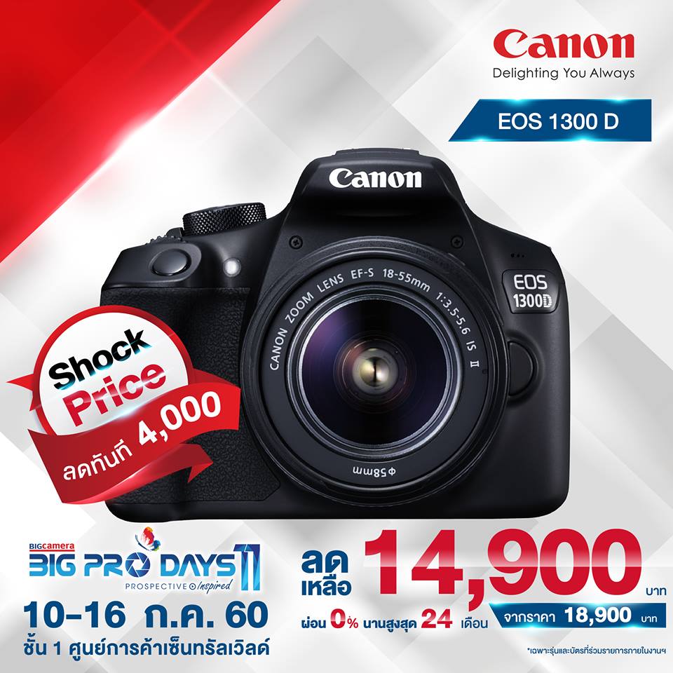 Shock Price! สินค้าราคาพิเศษเฉพาะในงาน BIG Camera BIG Pro Days 11 กับส่วนลดกล้องดิจิตอลสุดฮิตติดกระแสจากแบรนด์ชั้นนำ ลดสูงสุดถึง 14,000.- พร้อมโปรโมชั่นผ่อน 0% นานสูงสุด 24 เดือน *เฉพาะรุ่นและบัตรที่ร่วมรายการภายในงานฯ