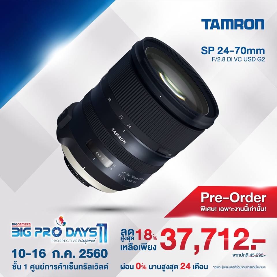 มหกรรมกล้องดิจิตอลที่ยิ่งใหญ่ที่สุดในประเทศไทย BIG CAMERA BIG PRO DAYS 2017 ภายใต้คอนเซ็ปต์ “Prospective Inspired” เพื่อเอาใจคนรักการถ่ายภาพตั้งแต่ระดับเริ่มต้นถึงระดับมืออาชีพ มาร่วมเรียนรู้เทคนิคการถ่ายภาพจากกูรูชื่อดัง และอัพเดตนวัตกรรมล่าสุดจากบริษัทผู้ผลิตกล้องและอุปกรณ์กล้องดิจิตอลชั้นนำ อาทิ FUJIFILM, SONY, OLYMPUS, PANASONIC, CANON, NIKON, CASIO, PENTAX, RICOH, THETA, SIGMA, TAMRON, GOPRO, HERRINGBONE, OSKA, POLAROID, INSTA360, LAOWA, SAMYANG, MITAKON, GOLLA, VANGUARD, FATBULL, FOTOPRO, PROGEAR X, SLIK, NISSIN, KENKO, KAMERAR, HOYA, NISI, SANDISK, TOSHIBA, LENSPEN