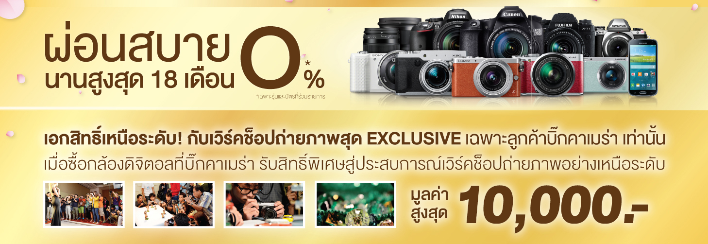 | และพิเศษสำรับลูกค้าที่ซื้อสินค้าที่ร้านบิ๊กคาเมร่าทุกสาขา รับสิทธิ์พิเศษเข้าร่วม Workshop มูลค่าสูงสุด 10,000 บาท |