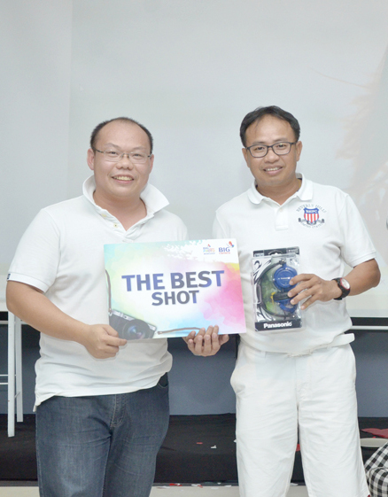| คุณบวรเกียรติ ไชยสุริยานันท์ Products Manager บริษัท พานาโซนิค ซิว เซลส์ (ประเทศไทย) จำกัด(ซ้าย), มอบรางวัลให้กับคุณรุจิภาส อ่อนสำอาง ผู้ชนะเลิศรางวัล The Best Shot (ขวา) |