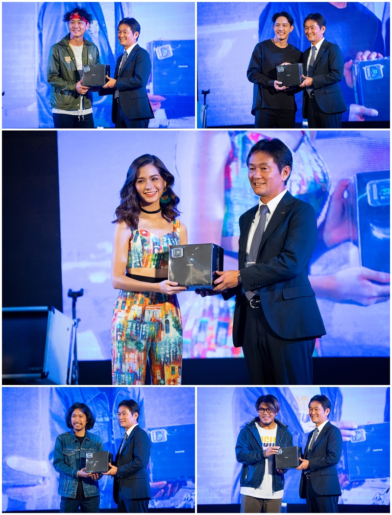 Mr.Tsutomu Watanabe กรรมการผู้จัดการของบริษัท ฟูจิฟิล์ม (ประเทศไทย) มอบกล้อง FujiFilm X-T100 ให้กับ วง Potato และ วี วิโอเล็ต วอร์เทียร์ Brand Ambassador ของ FujiFilm X-T100