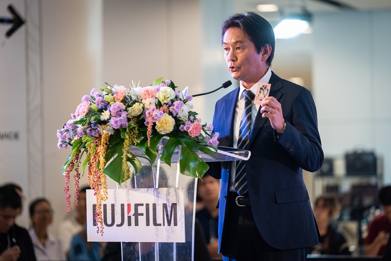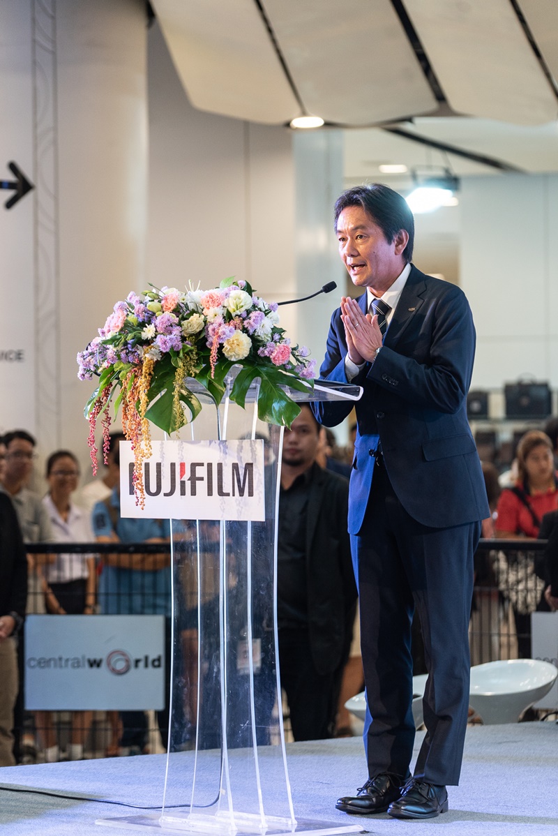 Mr.Tsutomu Watanabe กรรมการผู้จัดการของบริษัท ฟูจิฟิล์ม (ประเทศไทย) ขึ้นกล่าวเปิดงานและภาพรวมของกิจกรรมในวันนี้