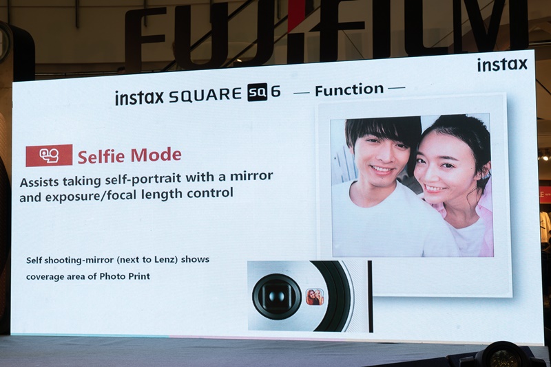 Instax SQ6 สามารถถ่าย Selfy ตัวเองได้ด้วย เพราะบริเวณด้านหน้ามีกระจกเล็กๆติดไว้ให้มองดูตัวเองได้เวลาถ่าย
