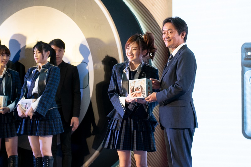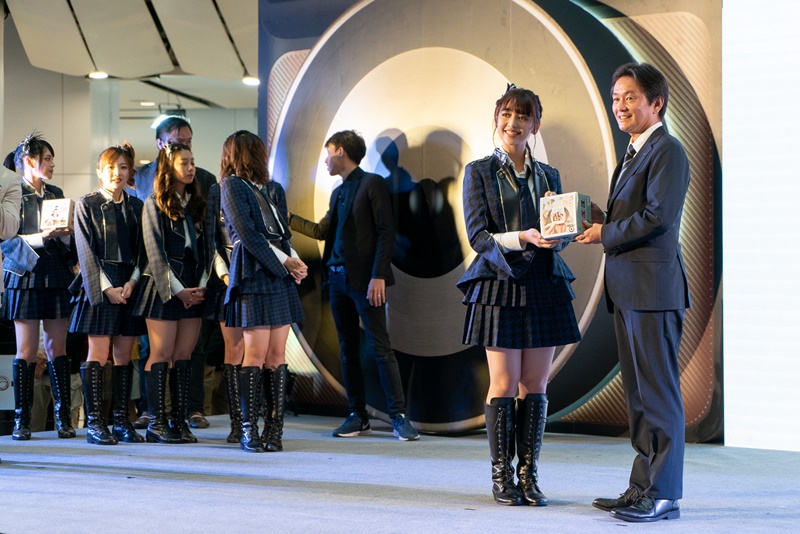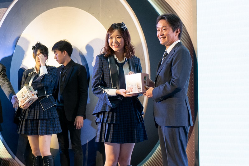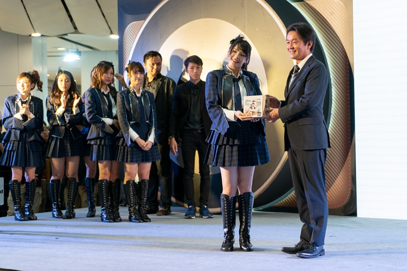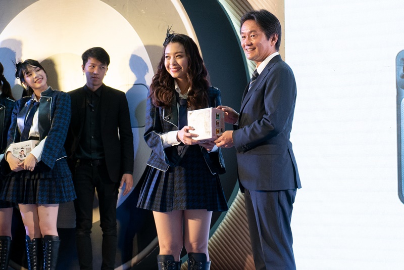 Mr.Tsutomu Watanabe กรรมการผู้จัดการของบริษัท ฟูจิฟิล์ม (ประเทศไทย) ขึ้นมอบกล้องให้กับสมาชิก BNK48