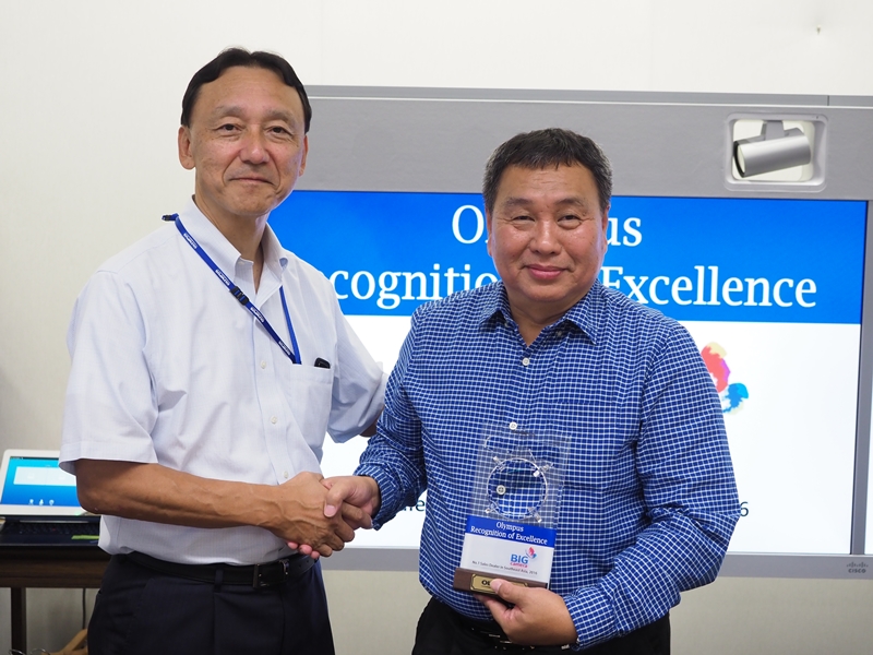 คุณชาญ เธียรกาญจนวงศ์ ประธานเจ้าหน้าที่บริหาร บริษัท บิ๊ก คาเมร่า คอร์ปอเรชั่น จำกัด (มหาชน) ผู้ดำเนินธุรกิจจัดจำหน่ายกล้อง และอุปกรณ์ ภายใต้แบรนด์ BIG Camera เข้ารับมอบรางวัลอันทรงเกียรติ “Recognition of Excellence, No.1 Sales Dealer in Southeast Asia, 2016” จาก มร.มาซะมิจิ ฮันดะ ผู้บริหารหัวหน้าหน่วยธุรกิจการถ่ายภาพ บริษัท โอลิมปัส จำกัด ณ สำนักงานใหญ่ สาขาฮาจิโอจิ เมืองโตเกียว ประเทศญี่ปุ่น