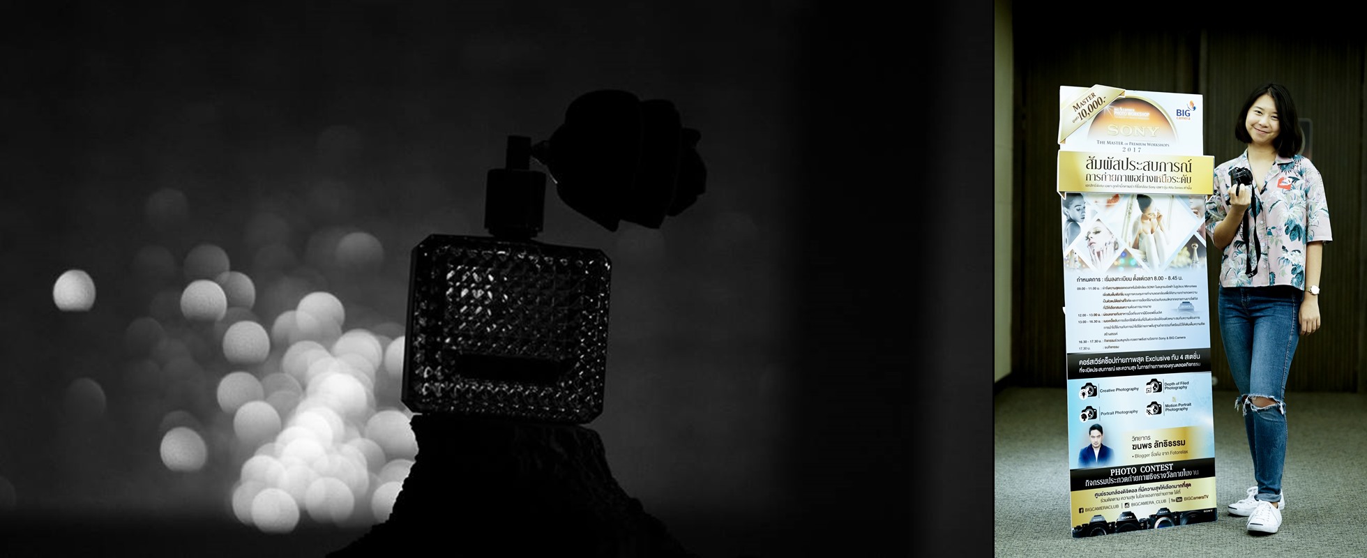 สวัสดีครับ ชื่อไปรท์ครับ ใช้กล้อง Sony A6000 ครับ ชอบรุ่นนี้เพราะว่า ภาพคม ไม่หนักครับ ที่เลือก BIG Camera เพราะราคาสมเหตุสมผล ก่อนซื้อก็ไม่ทราบเหมือนกันครับว่ามีเรียน Workshop แถมให้แบบนี้ พอได้มาเรียนแล้วประทับใจมาก ดีมากครับ ชอบที่สุดฐาน 4 ทีมีหลอดไฟครับ