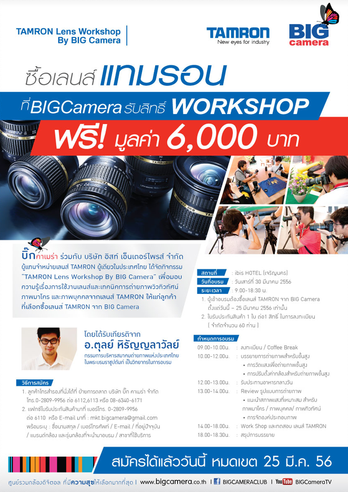 ซื้อเลนส์ TAMRON ที่ BIG Camera รับสิทธิ์ Workshop ฟรี! มูลค่า 6,000 บาท